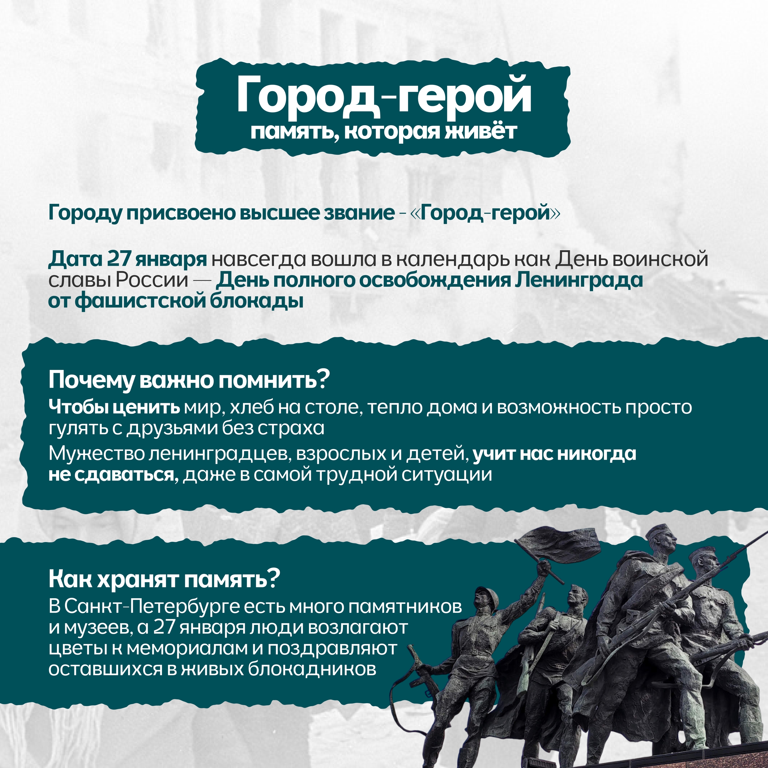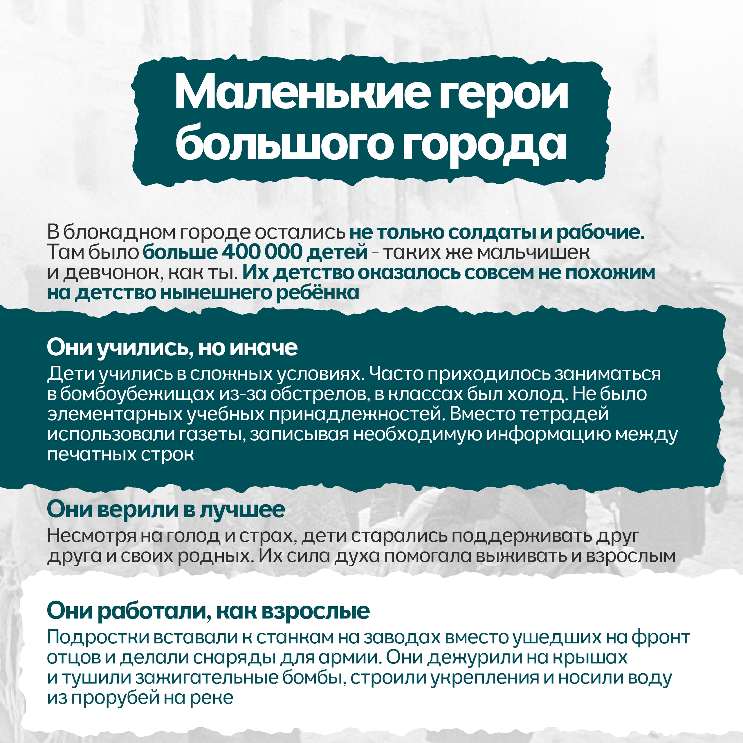 Блокада — это не просто история. Это кодекс чести, несгибаемой воли и любви к своему городу и Родине. Вечная память героям.