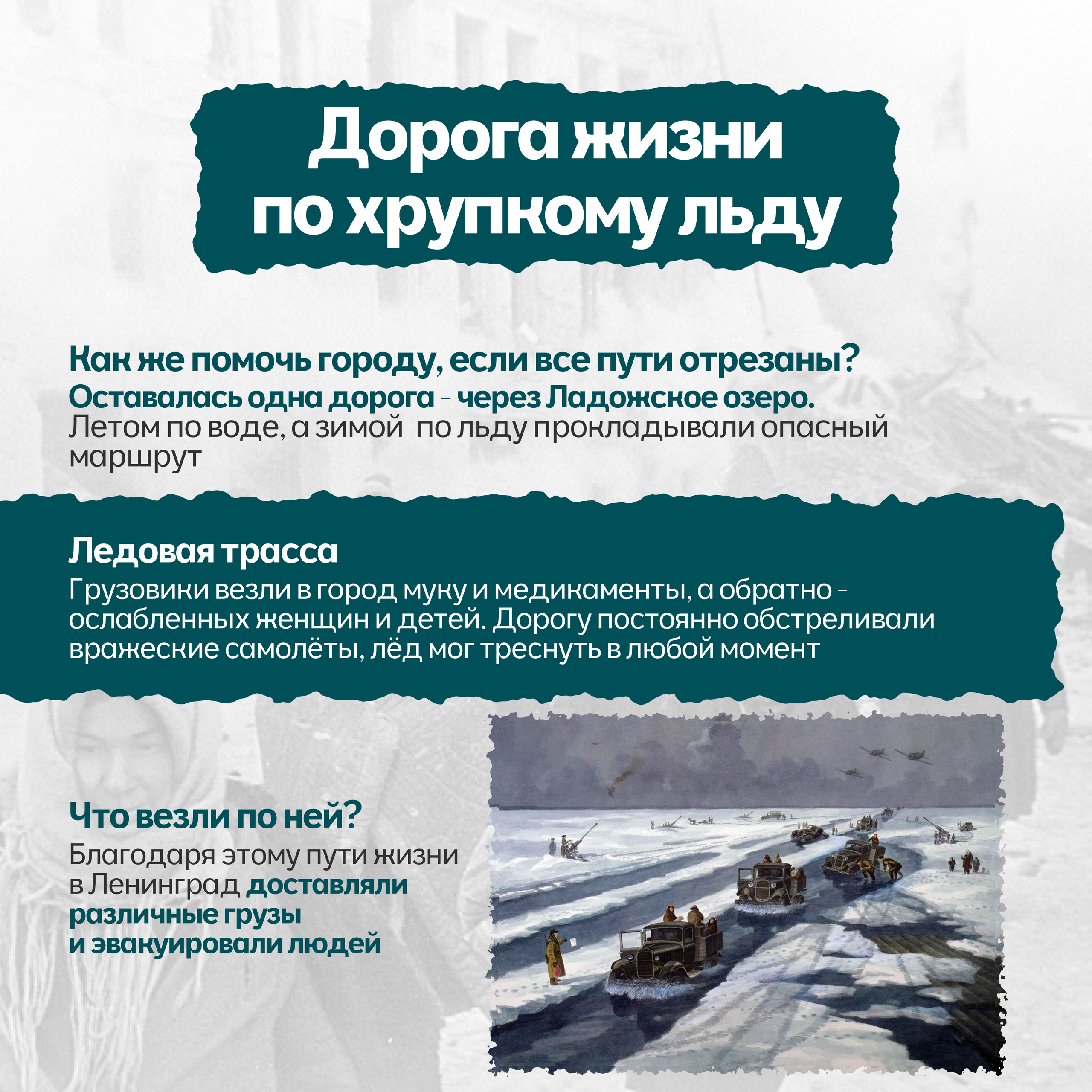 · Перед подвигом тех, кто по Дороге жизни вез в город хлеб, а из города — детей.
