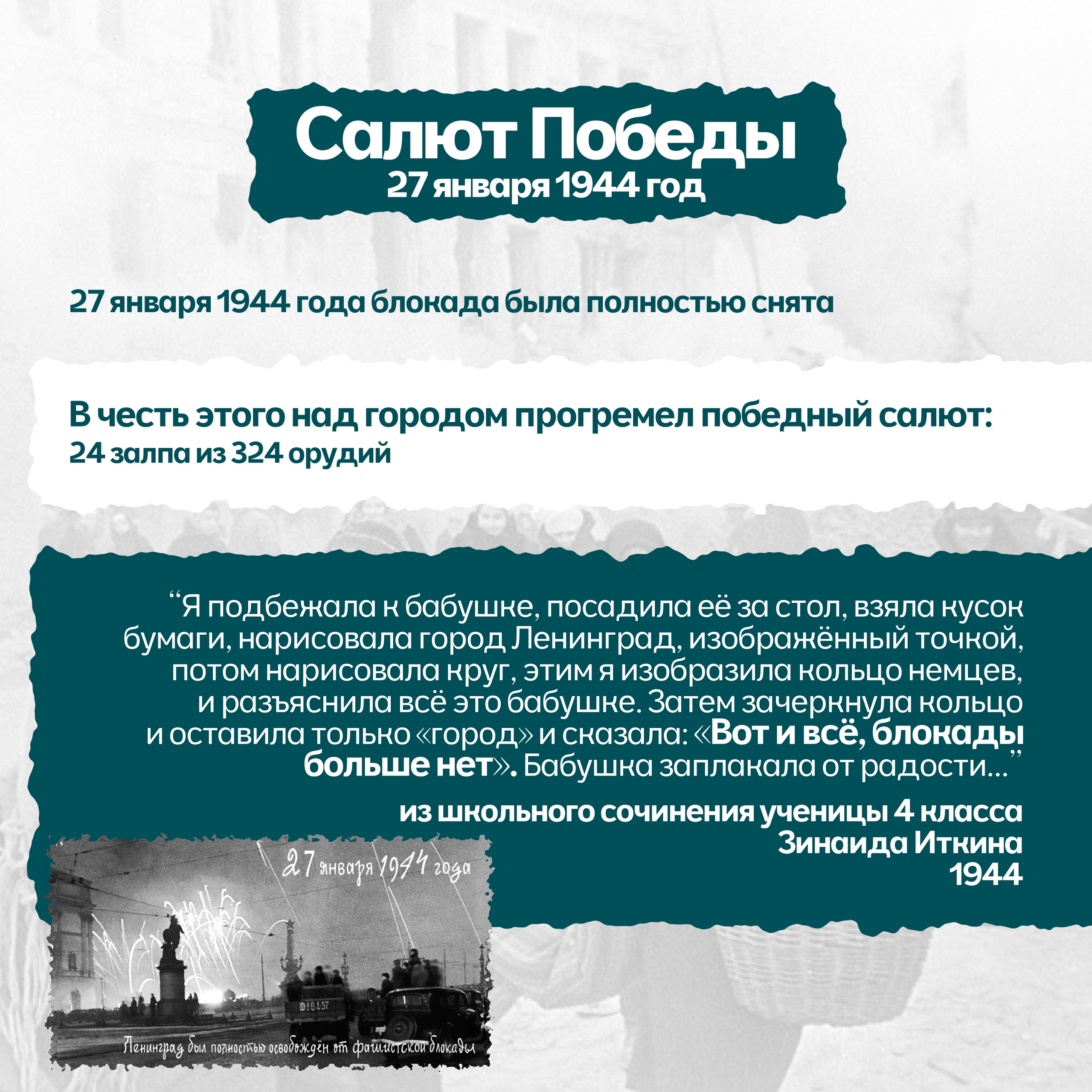 27 января 1944 года закончилась одна из самых страшных и героических страниц в истории человечества — блокада Ленинграда.